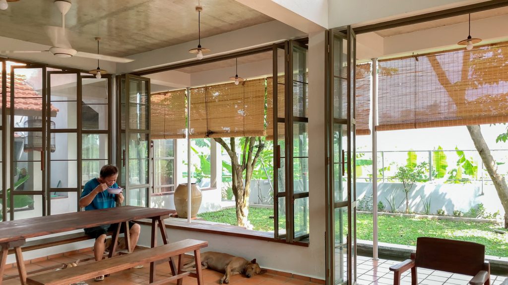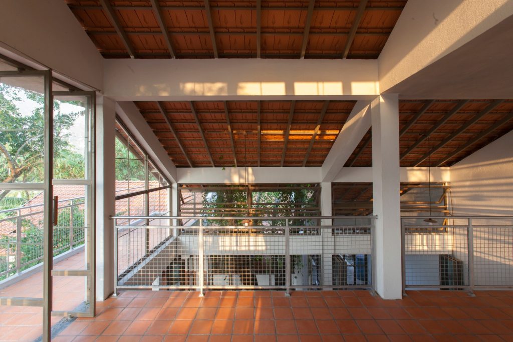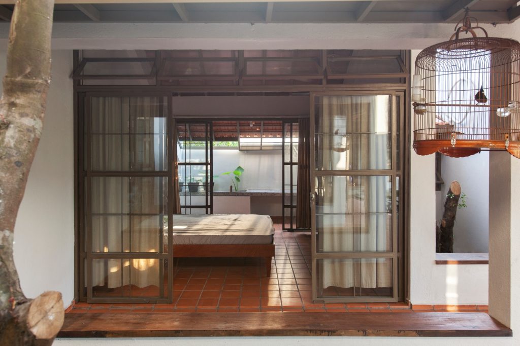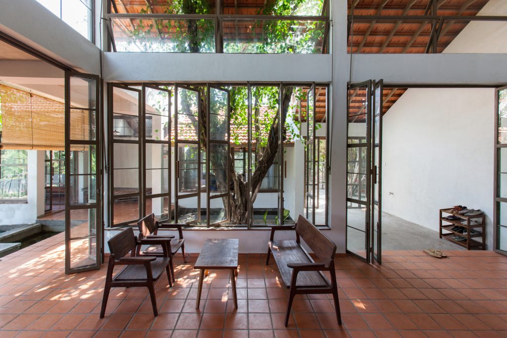 在材料选择上,项目大量采用传统材料与当地工艺,例如陶砖地面、木质家具、金属窗框与竹帘系统。这些元素不仅降低了建造与维护成本,也让空间呈现出朴素而真实的质感。材料并非追求视觉上的“新”,而是通过时间的使用,逐渐显现出属于这片土地的痕迹与温度。