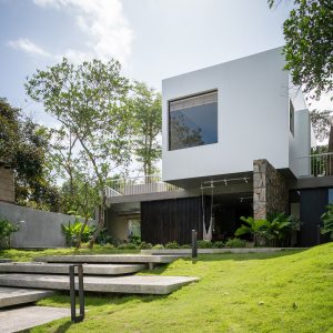 在快速城市化不断侵蚀自然空间的当下,这座住宅选择了一种温和而克制的回应方式。它并未以推倒与重建来宣告存在,而是顺应原有土地的条件,在十一棵参天大树的庇护下缓缓展开。建筑不再是对自然的占有者,而是成为其中的一部分,与树木、光影和时间共同生长,展现出“适应土地,而非取代土地”的核心理念。