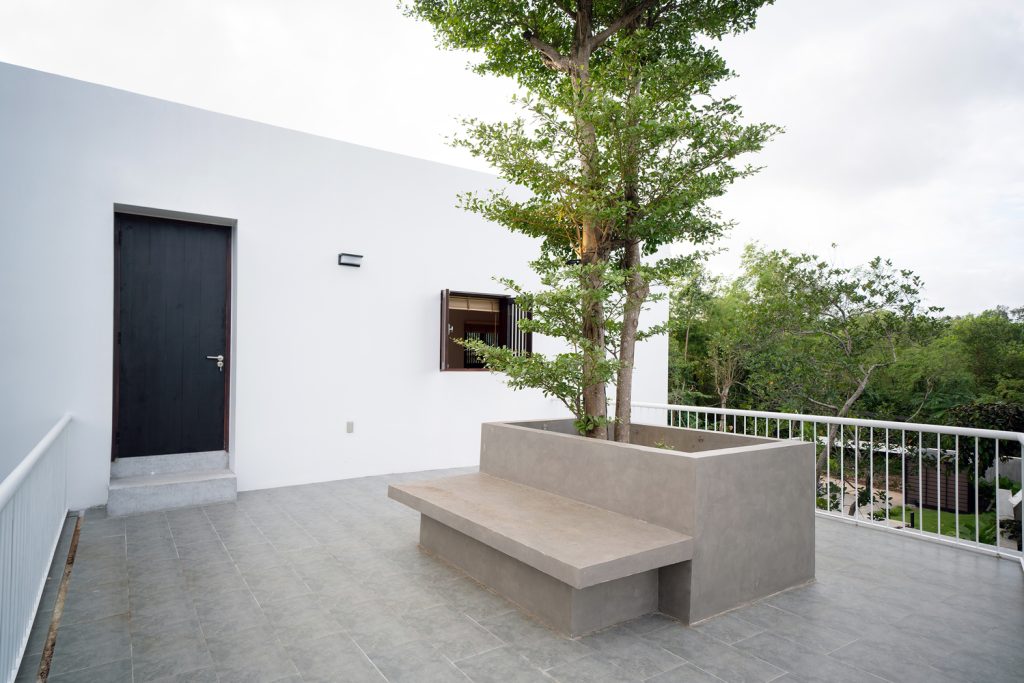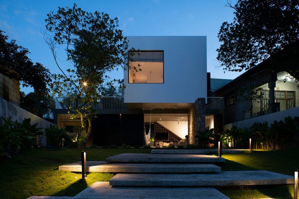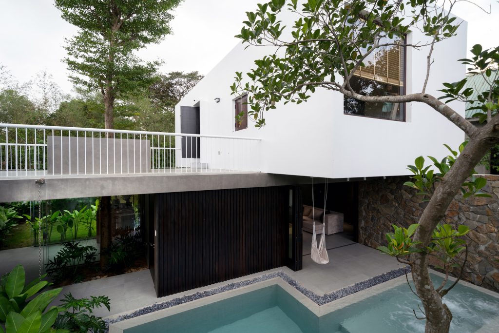 这座住宅项目以克制而清晰的方式,重新诠释了热带语境下的当代居住形态。建筑并未试图在自然中“显眼”,而是以一种安静、理性的姿态嵌入周围的绿色环境。从整体上看,白色的几何体量在树林与村落肌理之间显得轻盈而克制,既保持了现代建筑的纯粹感,又避免了对环境的压迫。